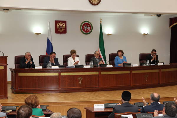 Болгар тарихи-археологик комплексының ЮНЕСКО Бөтендөнья мирас исемлегенә кертелүенә багышланган матбугат конференциясе. Татарстан Республикасы Дәүләт Киңәшчесе М.Ш.Шәймиев, Татарстан Республикасы Президентының социаль мәсьәләләр буенча ярдәмчесе Т.П.Ларионова, ТР мәдәният министры А.М. Сибагатуллин катнаша 24.06.2014