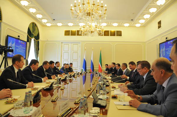 Татарстан Республикасы Президенты Р.Н. Миңнехановның Свердловск өлкәсе губернаторы Евгений Владимирович Куйвашев җитәкчелегендәге делегациясе белән очрашуы 21.06.2014