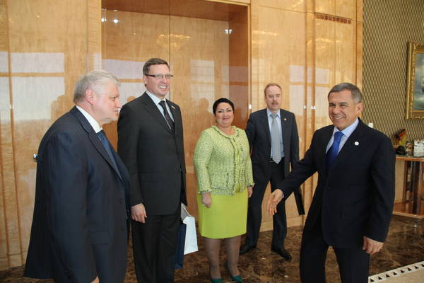 Татарстан Республикасы Президенты Р.Н. Миңнехановның "Гадел Россия" сәяси партиясе рәисе, Россия Федерациясе Федераль Собраниесе Дәүләт Думасында "Гадел Россия" фракциясе җитәкчесе Сергей Михайлович Миронов белән очрашуы 27.03.2014