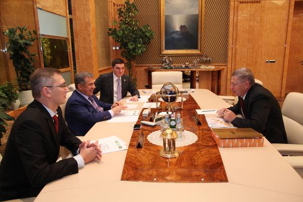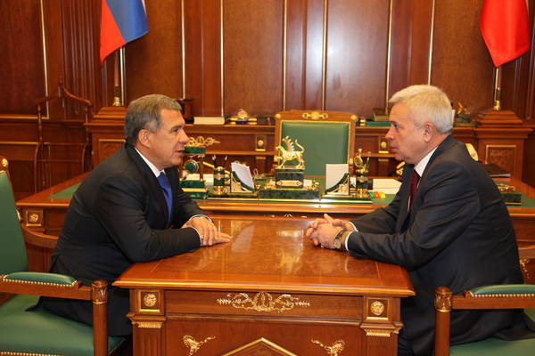Татарстан Республикасы Президенты Р.Н.Миңнехановның "Дельрус" компаниясе президенты Юлай Басырович Магадеев белән очрашуы 15.11.2013