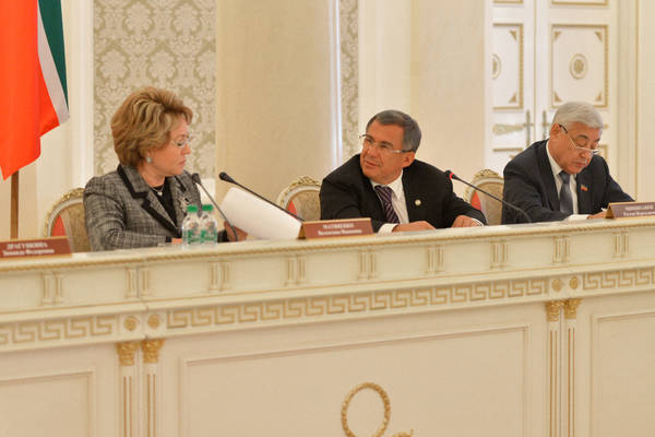 "Россия регионнарының интеллектуаль милек хокуклары базарын үстерүдәге роле" темасына Россия Федерациясе Федераль Собраниесе Федерация Советы Рәисе каршындагы интеллектуаль милек мәсьәләләре советы утырышы. Россия Федерациясе Федераль Собраниесе Федерация Советы Рәисе Валентина Ивановна Матвиенко, Татарстан Республикасы Президенты Р.Н. Миңнеханов катнаша. 07.11.2013