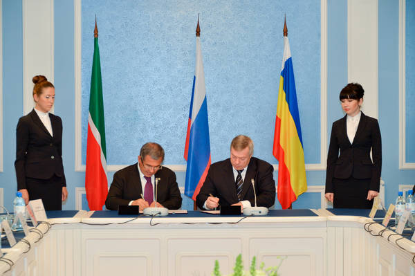 Татарстан Республикасы белән Ростов өлкәсе арасында сәүдә-икътисадый, фәнни-техник, социаль һәм мәдәни хезмәттәшлек турында килешүгә кул кую. Татарстан Республикасы Президенты Рөстәм Миңнеханов катнашты. 08.11.2013