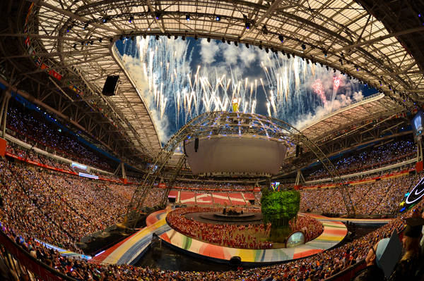 Казан шәһәрендәге 2013 елгы XXVII Бөтендөнья җәйге универсиадасын тантаналы ябу. Россия Федерациясе Хөкүмәте Рәисе Дмитрий Анатольевич Медведев һәм Татарстан Республикасы Президенты Р.Н. Миңнеханов катнаша. 17.07.2013