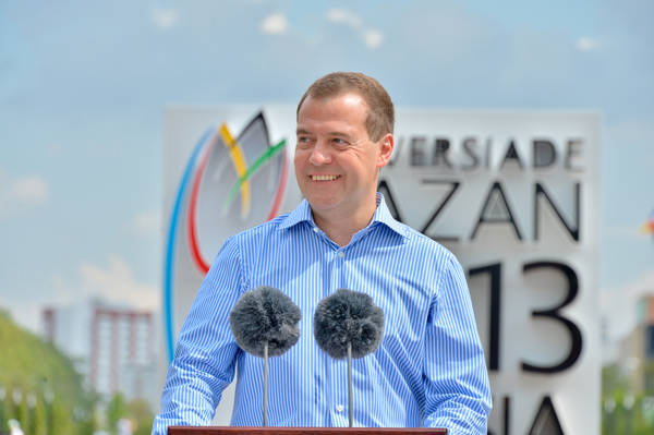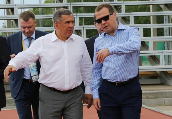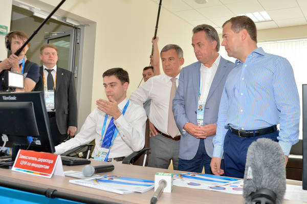 Россия Федерациясе Хөкүмәте Рәисе Дмитрий Анатольевич Медведев һәм Татарстан Республикасы Президенты Р.Н.Миңнехановның Универсиада авылының Халыкара Мәгълүмат Үзәгендә булулары. 17.07.2013