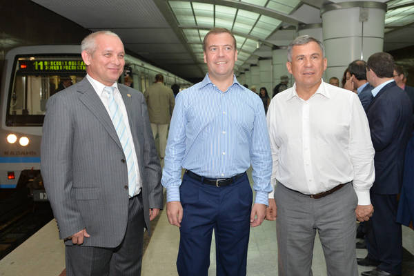 Россия Федерациясе Хөкүмәте Рәисе Дмитрий Анатольевич Медведев һәм Татарстан Республикасы Президенты Р.Н.Миңнехановның "Авиастроительная" метро станциясендә булулары 17.07.2013