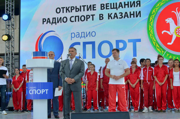 Казан шәһәрендә "Радио Спорт" радиостанциясе тапшыруларын башлап җибәрү тантанасы. Татарстан Республикасы Президенты Р.Н. Миңнеханов катнаша. 05.07.2013