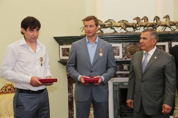 "Татарстан Республикасы алдындагы казанышлары өчен" орденнарын "Ак Барс" Хоккей клубының элеккеге уенчылары А.А.Морозовка һәм Д.З.ЗариповкаТатарстан Республикасы Президенты Р.Н. Миңнеханов тарафыннан тапшыру 05.07.2013