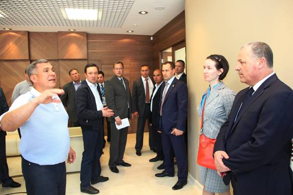 Татарстан Республикасы Президенты Р.Н.Миңнехановның һәм ФИФА Башкарма комитеты әгъзасы Хани Абу Рида әфәнденең Казан-Арена стадионында булуы 03.06.2013