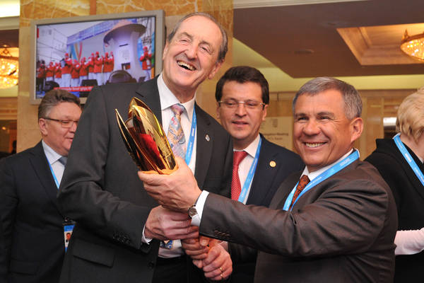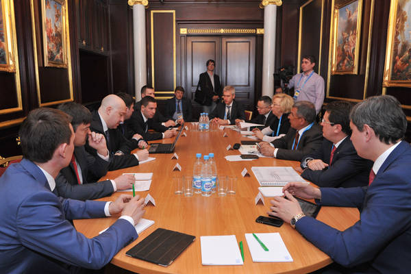 Казан шәһәрендәге 2013 елгы XXVII Бөтендөнья җәйге универсиадасы делегацияләре башлыклары очрашуы. Татарстан Республикасы Президенты Р.Н.Миңнеханов катнаша. 05.04.2013