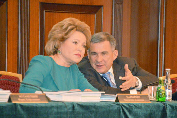 “РФ субъектларында коррупциягә каршы торуның хокук һәм институциональ нигезләрен яхшырту: проблемалар һәм аларны чишү ысуллары” темасына Бөтенроссия фәнни-гамәли конференциясе. Россия Федерациясе федераль җыелышының Федерация Советы рәисе Валентина Ивановна Матвиенко һәм Татарстан Республикасы Президенты Р. Н. Миңнеханов катнашалар. 13.02.2013