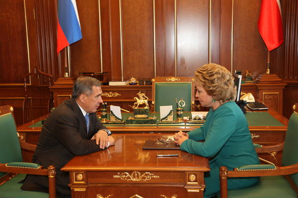 Татарстан Республикасы Президенты Р. Н. Миңнехановның Россия Федерациясе Федераль җыелышының Федерация Советы рәисе Валентина Ивановна Матвиенко белән әңгәмәсе. 13.02.2013