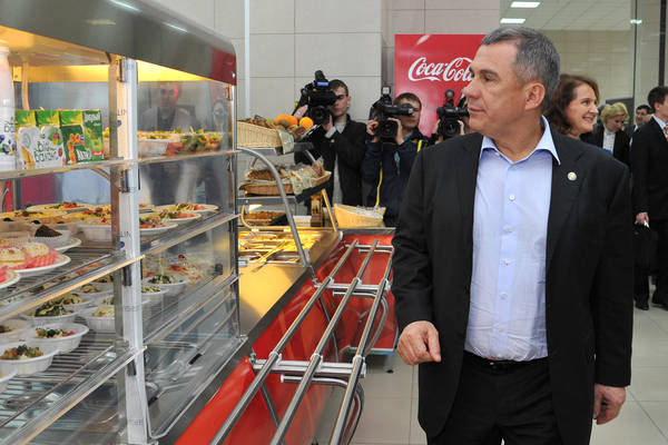 Универсиада спортчылары өчен менюның 1нче көн ризыкларын тәкъдим итү. ТР Президенты Р.Н.Миңнеханов катнаша. 20.04.2012