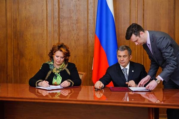 Россия Федерациясе авыл хуҗалыгы министрлыгы һәм Татарстан Республикасы арасында килешүне имзалау. Килешүне РФ авыл хуҗалыгы министры Елена Борисовна Скрынник һәм ТР Президенты Р.Н.Миңнеханов имзалый. 02.02.2012