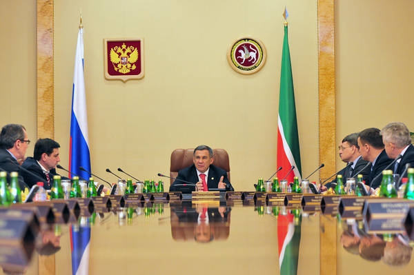 "РФ субъектлары башкарма хакимияте органнарының эшчәнлек нәтиҗәлелеген бәяләү" мәсьәләсе буенча киңәшмә. РФ Хөкүмәт рәисе В.В.Путин үткәрә. ТР Премьер-министры И.Ш.Халиков катнаша. М.Козловский фотосы.