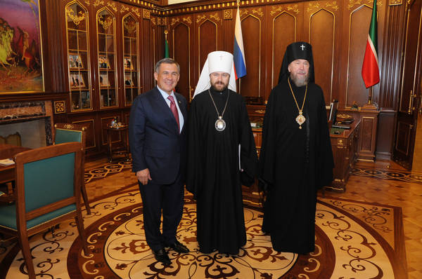 ТР Президенты Р.Н.Миңнехановның Мәскәү Патриархатының тышкы чиркәү элемтәләре бүлеге рәисе митрополит Волокаламский Иларион белән очрашуы 03.11.2011