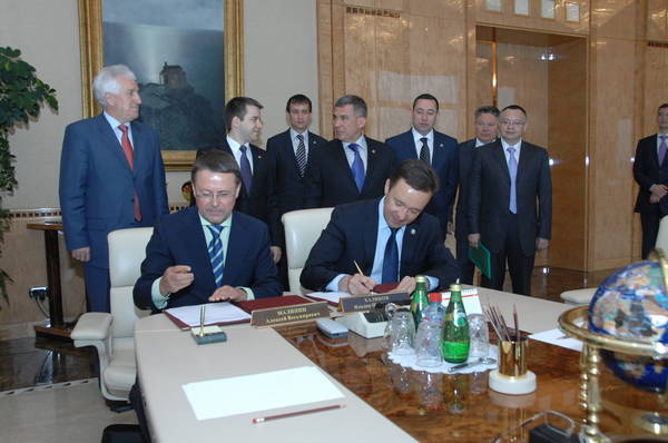 ТР Президенты Р.Н.Миңнехановның 2013 ел Универсиадасына Казанда күпфункцияле телевизион комплекс һәм мультимедиа үзәге төзелеше мәсьәләсе буенча "РТРС" федераль дәүләт унитар предприятиесе генераль директоры А.В.Малинин белән очрашуы. ТР Премьер-министры И.Ш.Халиков катнаша. 19.05.2010