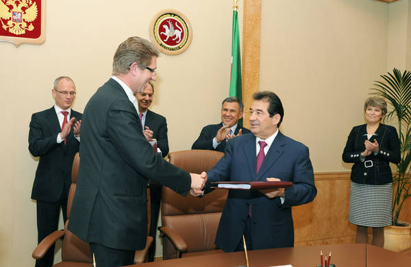 “Татнефть” ААҖ һәм WestLB, Unicredit, RBS җитәкчелегендәге банклар синдикаты арасында Түбән Камадагы Нефть эшкәртү һәм нефть химиясе заводлары комплексын төзү проектын финанслау максатыннан төзелә торган Кредит шартнамәсенә кул кую тантанасы 24.11.2009