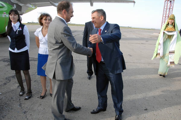 Россия Федерациясе Пенсия фонды идарәсе рәисе Антон Викторович Дроздовның Татарстан Республикасына килүе. Татарстан Республикасы Премьер-министры Р.Н.Миңнеханов каршы ала 18.08.2009