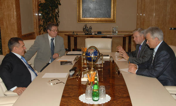 Татарстан Республикасы Премьер-министры Р.Н.Миңнеханов янында кече нефть компанияләренең нефть эшкәртү заводын төзү проекты мәсьәләләре буенча киңәшмә. 30.09.2008