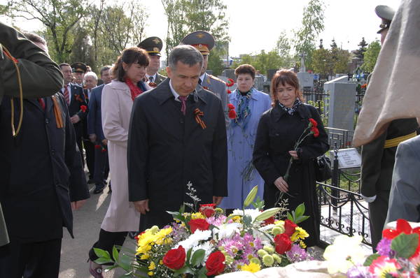 Татарстан Республикасы Премьер-министры Рөстәм Миңнеханов катнашында хәрби каберлекләргә веноклар һәм чәчәкләр салу 09.05.2008