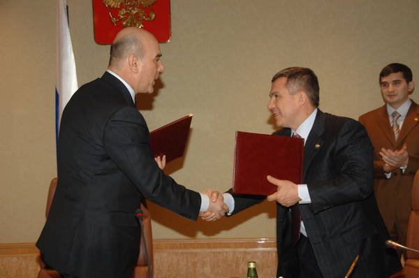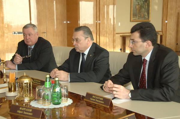 Татарстан Республикасы Премьер-министры Рөстәм Миңнеханов янында Кораллы Көчләрне коралландыру башлыгы - Россия Федерациясе оборона министры урынбасары, армия генералы Николай Макаров катнашында киңәшмә 19.02.2008