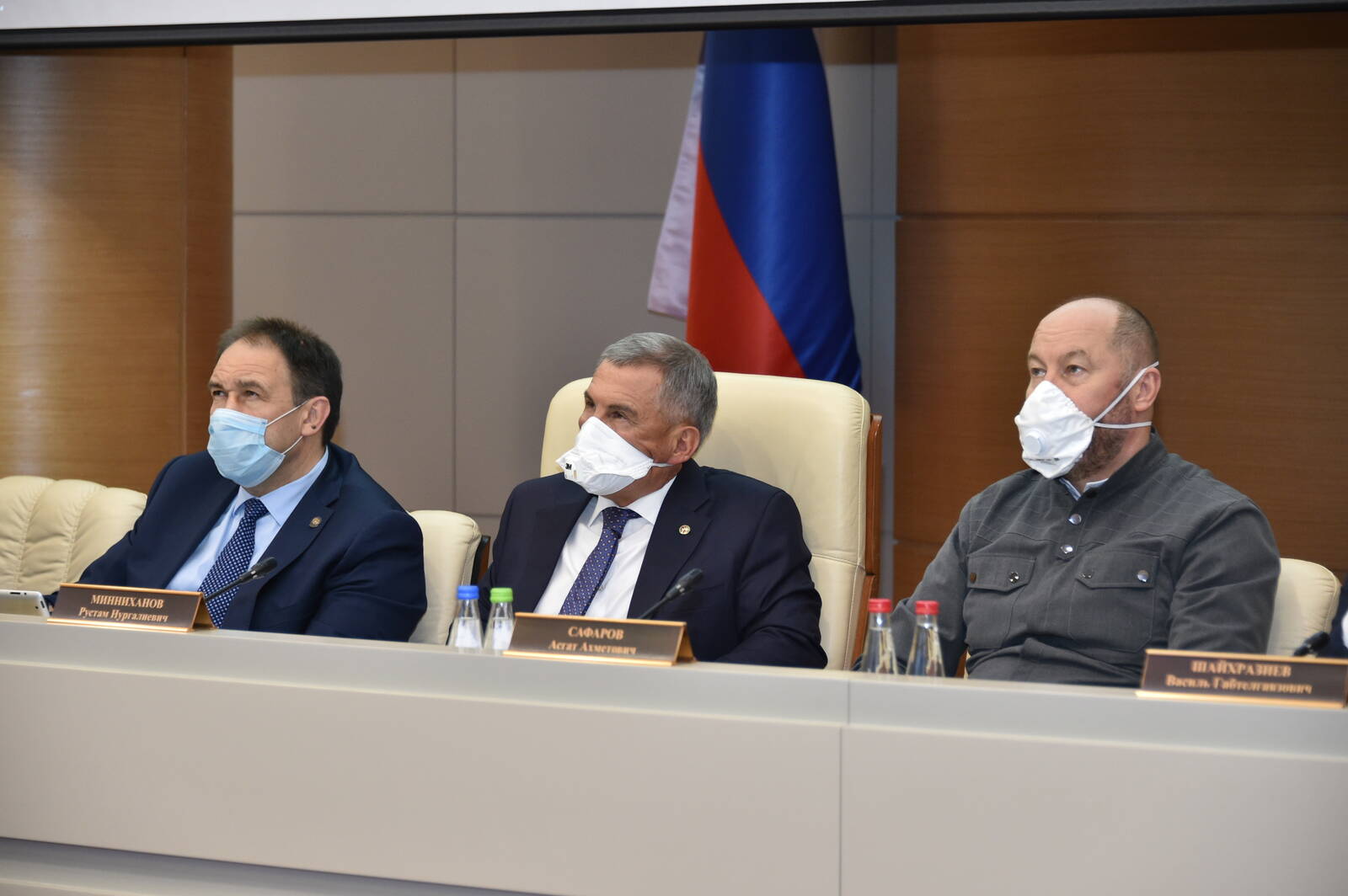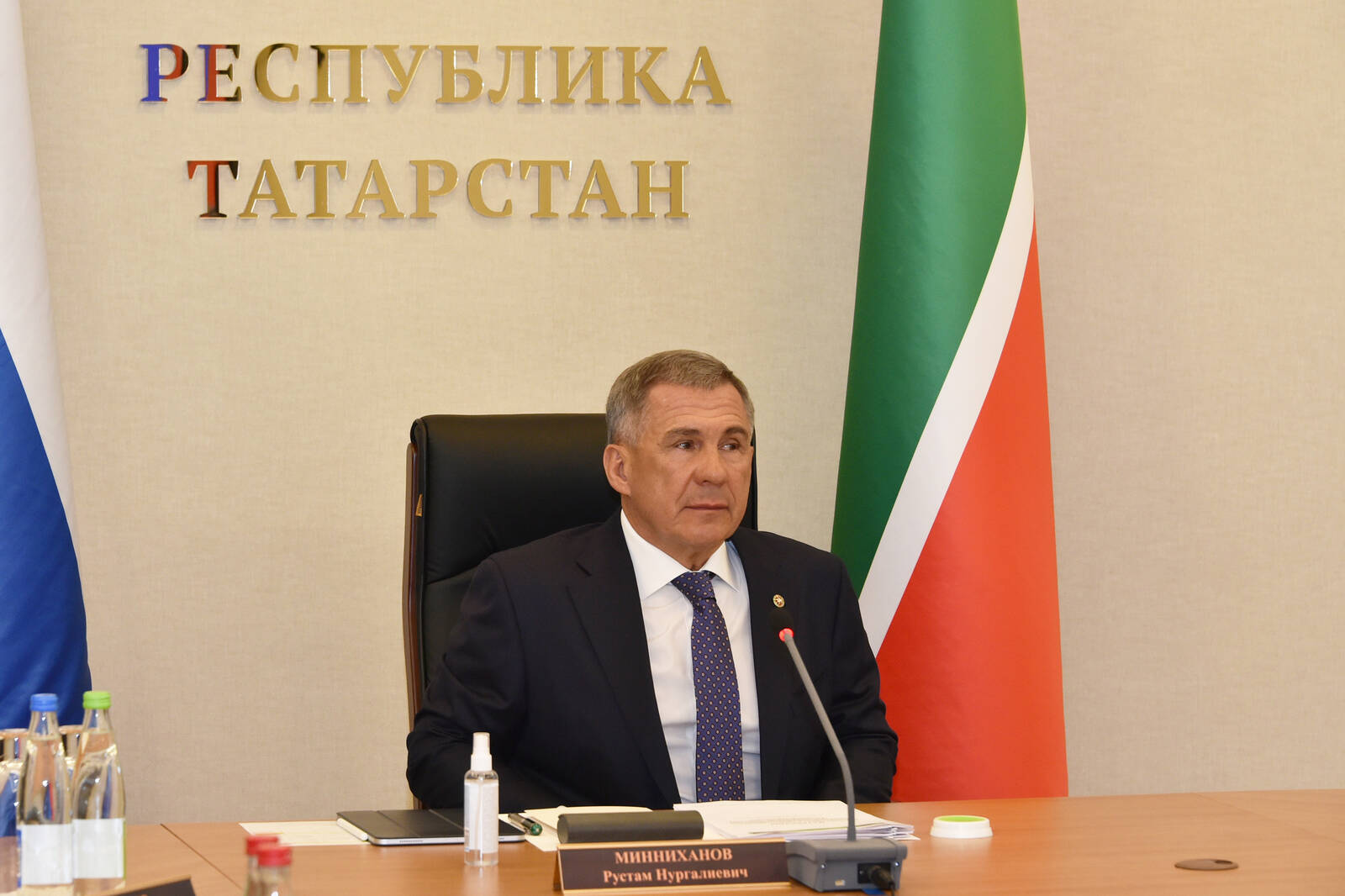 Россия Федерациясе Иминлек Советы Секретаре Николай Платонович Патрушевның һәм Россия Федерациясе Президентының Идел буе федераль округындагы Тулы вәкаләтле вәкиле Игорь Комаровның видеоконференция режимында уртак киңәшәмсе. Татарстан Республикасы Президенты Р.Н. Миңнеханов катнаша.