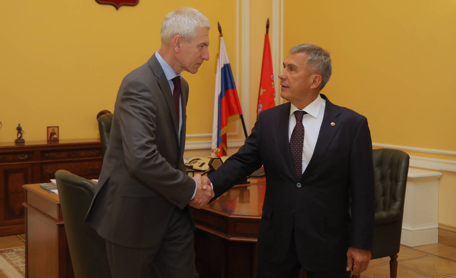 Татарстан Республикасы Президенты Р.Н. Миңнехановның "Саклык банкы" ГАҖ президенты, идарәсе рәисе Герман Оскарович Грефның Татарстан Республикасына эш сәфәре программасы буенча эшләве