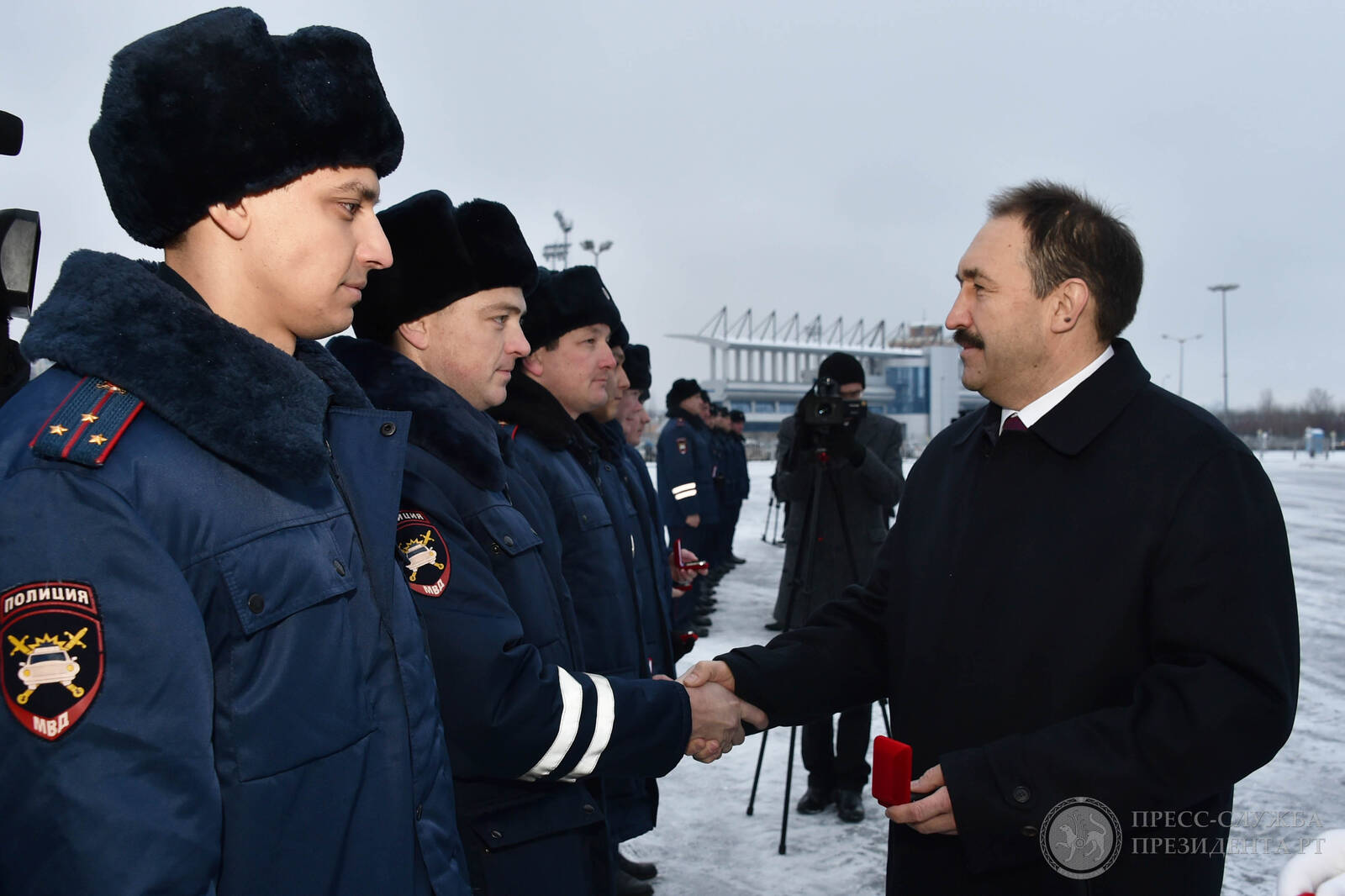 Татарстан Республикасы буенча Эчке эшләр министрлыгының ЮХИДИИ бүлекчәләренә автомобильләр тапшыру тантанасы. Татарстан Республикасы Премьер-министры А.В. Песошин катнаша.