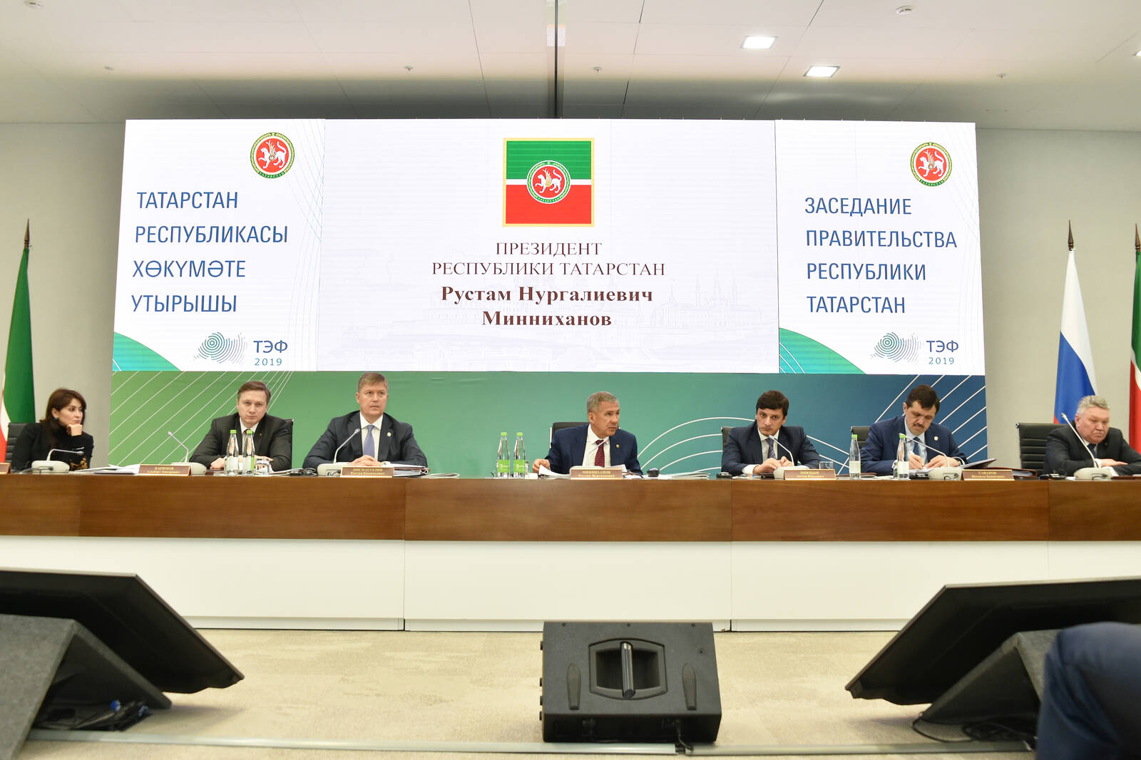 «2014–2020 елларга Татарстан Республикасының энергияне сак тоту һәм энергия нәтиҗәлелеген күтәрү» дәүләт программасын гамәлгә ашыруның барышы һәм 2019 елга бурычлар турында» Татарстан Республикасы Министрлар Кабинеты утырышы. Татарстан Республикасы Президенты Р.Н. Миңнеханов катнаша.