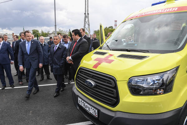 Татарстан Республикасы Президенты Р.Н. Миңнехановның Казан шһәренең ашыгыч медицина ярдәме станциясенә автомобильләр тапшыруы 05.06.2017
