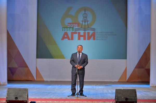 Әлмәт дәүләт нефть институты төзелүгә 60 ел тулуга багышланган тантана. Татарстан Республикасы Президенты Р.Н. Миңнеханов катнаша. 03.11.2016