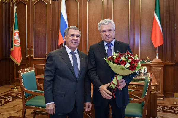 Татарстан Республикасы Президенты Р.Н. Миңнехановның Татарстан Республикасы Предприятиеләре һәм сәнәгатьчеләре ассоциациясе президенты А.П. Лаврентьевка "Дуслык" орденын тапшыруы 10.10.2016