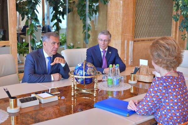 Татарстан Республикасы Президенты Р.Н.Миңнехановның РФ Финанс министрлыгының Бюджетара мөнәсәбәтләр департаменты директоры Л.А.Ерошкина белән очрашуы 22.07.2016