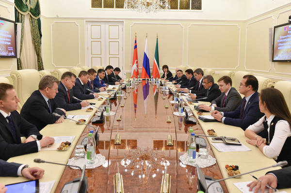 Татарстан Республикасы Президенты Р.Н. Миңнехановның Волгоград өлкәсе Губернаторы Андрей Иванович Бочаров җитәкчелегендәге Волгоград өлкәсе делегациясе белән очрашуы 14.03.2016