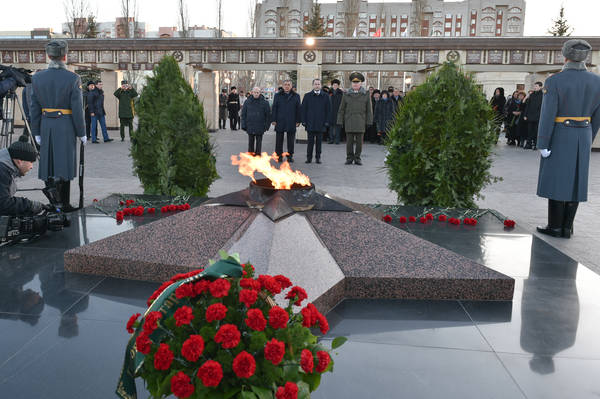 Ватан Геройлары көненә багышлап Мәңгелек утка чәчәкләр салу чарасы. ИФОндагы Тулы вәкаләтле вәкил Михаил Бабич һәм Татарстан Республикасы Президенты Р.Н. Миңнеханов катнаша. 09.12.2015