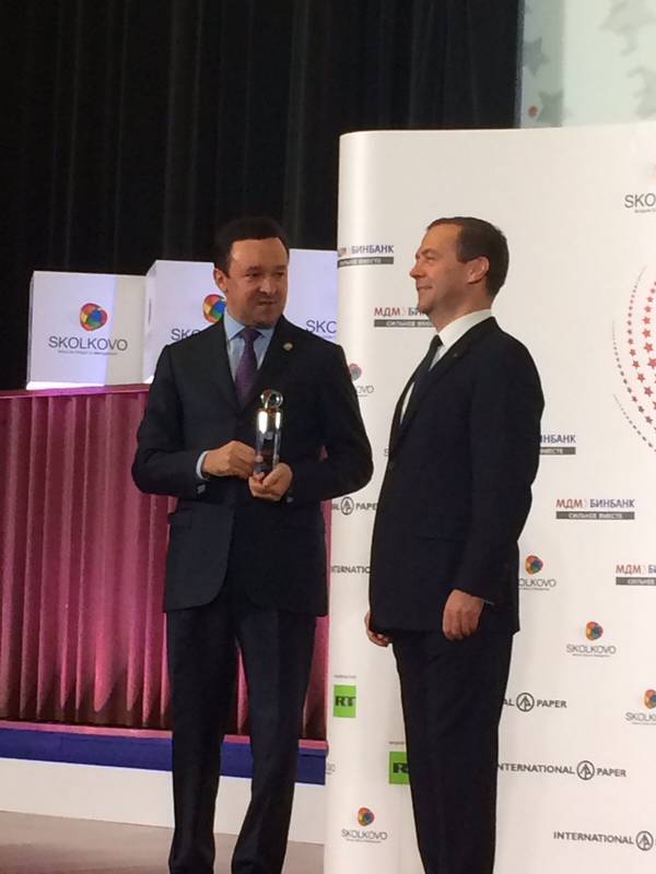 Россия Федерациясе Хөкүмәте Рәисе Д.А. Медведев катнашында SKOLKOVO Trend Award премиясе өчен җиңүчеләргә бүләкләр тапшыру тантанасы. Татарстан Республикасы Премьер-министры И.Ш. Халиков катнаша. 20.10.2015