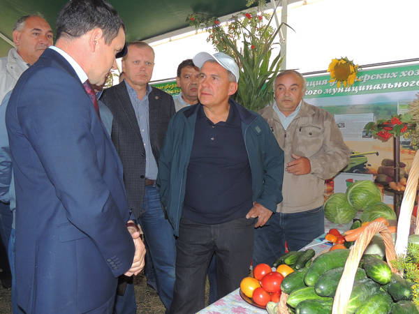 Татарстан Республикасы Президенты вазыйфаларын вакытлыча башкаручы Р.Н. Миңнехановның Югары Ослан муниципаль районына урып-җыю барышы белән танышу өчен эш сәфәре 07.08.2015