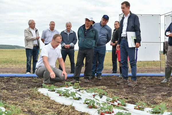 Татарстан Республикасы Президенты вазыйфаларын вакытлыча башкаручы Р.Н. Миңнехановның Әлмәт муниципаль районына урып-җыю барышы белән танышу өчен эш сәфәре 06.08.2015