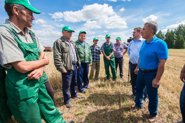 Татарстан Республикасы Президенты вазыйфаларын вакытлыча башкаручы Р.Н. Миңнехановның Бөгелмә муниципаль районына урып-җыю барышы белән танышу өчен эш сәфәре 06.08.2015