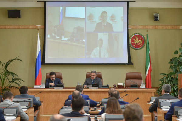 Иннокам территориаль аерымланган инновацион-җитештерү үзәген булдыру концепциясе проектын тәкъдир итү. Татарстан Республикасы Президенты вазыйфаларын вакытлыча башкаручы Р.Н. Миңнеханов һәм Россия Федерациясе Президенты каршындагы Россия халык хуҗалыгы һәм дәүләт хезмәте академиясе ректоры Владимир Александрович Мау катнаша. 24.07.2015