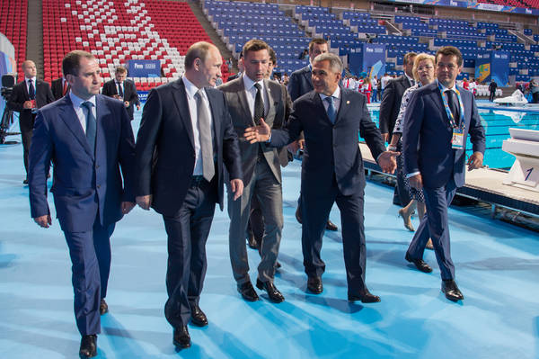 Казан шәһәрендә 2015 елгы Су спорт төрләре буенча XVI дөнья чемпионатын ачу тантанасы. Россия Федерациясе Президенты В.В.Путин һәм Татарстан Республикасы Президенты вазыйфаларын вакытлыча башкаручы Р.Н. Миңнеханов катнаша. 24.07.2015