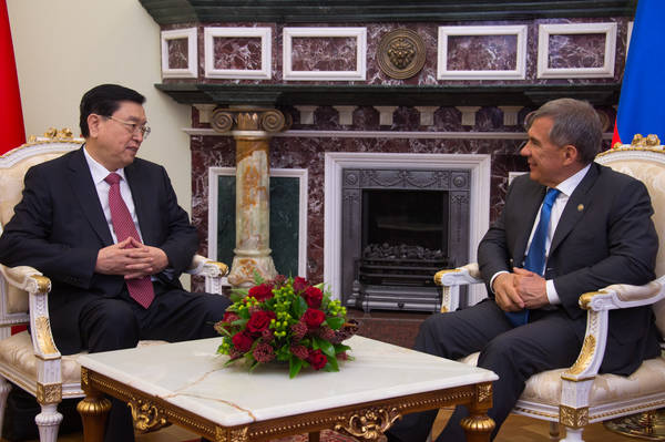 Татарстан Республикасы Президенты вазыйфаларын вакытлыча башкаручы Рөстәм Миңнехановның Бөтенкытай халык вәкилләре җыелышының Даими комитеты Рәисе Чжан Дэцзян белән очрашуы 10.06.2015