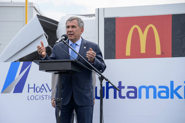 «Хави Логистикс Алабуга» ҖЧҖ бленеш үзәге ачылу тантанасы һәм «Хухтамаки Фудсервис Алабуга» ҖЧҖ заводында булу. Татарстан Республикасы Президенты вазыйфаларын вакытлыча башкаручы Р.Н.Миңнеханов катнаша. 03.06.2015