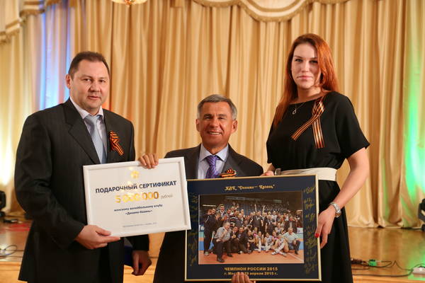 Россия чемпионатында җиңүче «Динамо-Казан» һәм «Зенит-Казан» волейбол командаларын хөрмәтләүгә багышланган тантаналы чара. Татарстан Республикасы Президенты вазыйфаларын вакытлыча башкаручы Р.Н. Миңнеханов катнаша. 04.05.2015